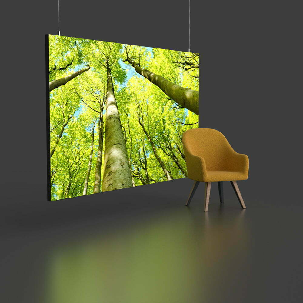 Unsere beidseitig bespannbaren Lichtwände aus Aluminium mit einer Rahmentiefe von 80 mm und der exzellente Beleuchtung durch Kanteneinstrahlung. Die Farbe der Lackierung können Sie nach Ihren Wünschen aus jedem RAL-Ton aussuchen. Durch unsere effiziente Produktverpackung und den leichten Zusammenbau der Lichtwand können wir eine problemlose Lieferung auch bei Längen von bis zu 15 m und Höhen von bis zu 3,5 m garantieren. Passen Sie das Produkt Ihren Bedürfnissen an, indem Sie sich für eine hängende oder frei stehende Anbringungsmöglichkeit entscheiden. Durch die verschiedenen Arten das Produkt zu individualisieren, hat es unterschiedliche Einsatzgebiete, wie z.B. den Einzelhandel, Hotels, Gastronomie, Büros, Messen oder auch die eigenen vier Wände.